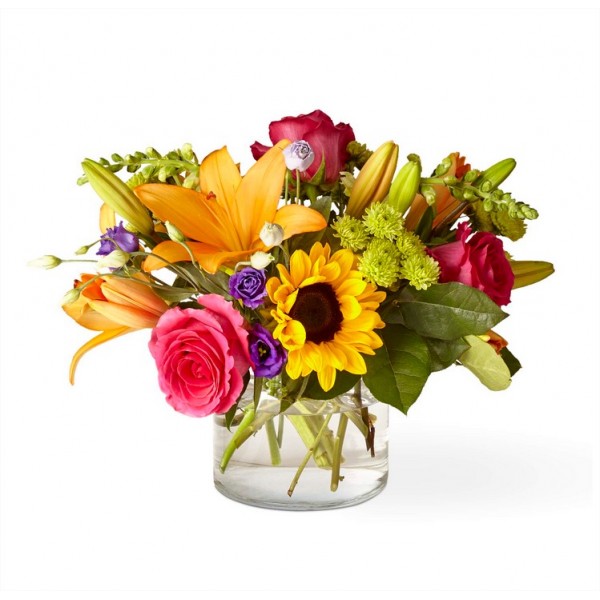 Faites de cette journée leur plus belle journée. Nous fabriquons à la main cette gamme colorée de fleurs dans un vase en verre transparent pour créer une célébration en fleur. Parfait pour donner pour une raison particulière ou simplement pour partager un sourire.